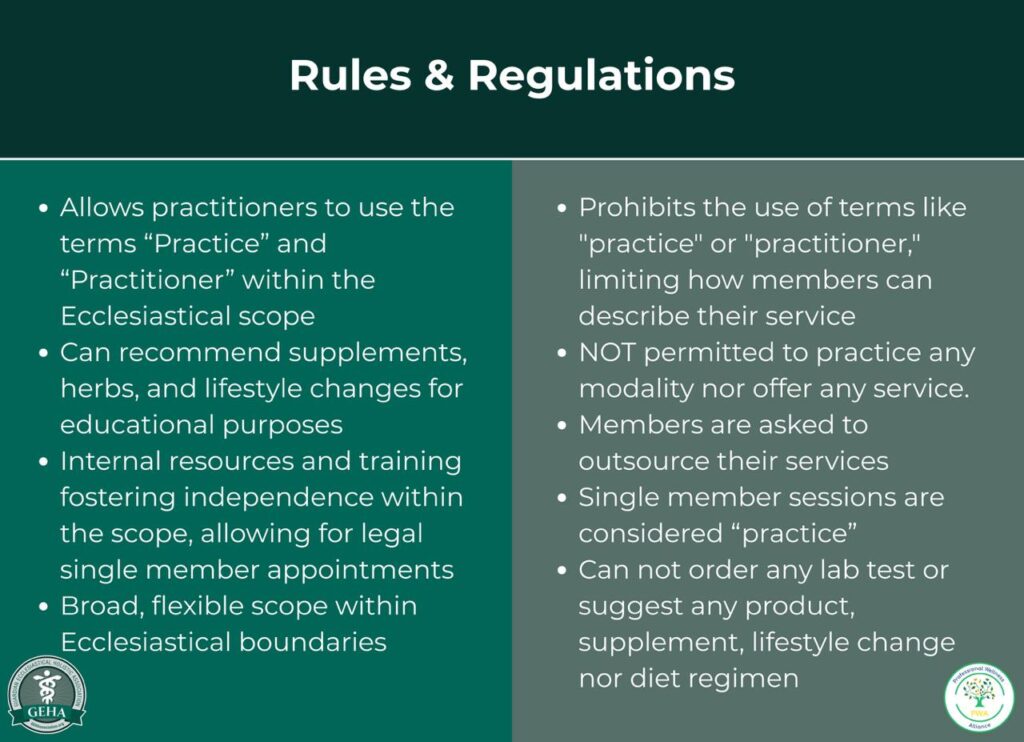 You might be wondering what GEHA is all about. We’re more than just an organization—we’re a community of practitioners and wellness seekers who believe in the power of natural wellness and Biblical principles. GEHA has been protecting and supporting holistic practitioners since 2017.